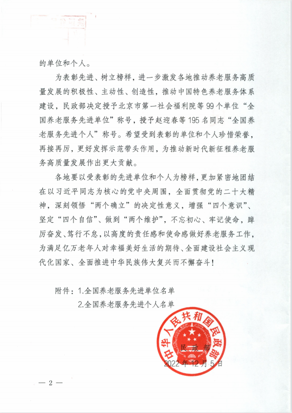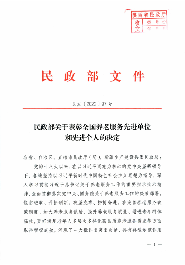 近日,民政部印发了《关于表彰全国养老服务先进单位和先进个人的决定》,表彰了全国99家养老服务先进单位,陕西省3家,市产投集团旗下子公司咸阳不老帮智慧养老有限公司荣获“全国养老服务先进单位”。4月6日上午,市委常委、市政府副市长罗军为咸阳不老帮智慧养老有限公司荣获“全国养老服务先进单位”授牌。